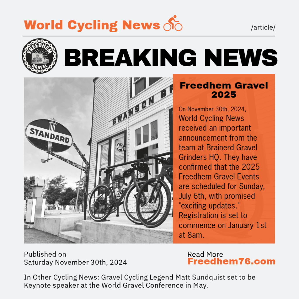 It’s official. Freedhem Gravel will return on July 6th, 2025. Stay tuned for details as we have some exciting updates coming.